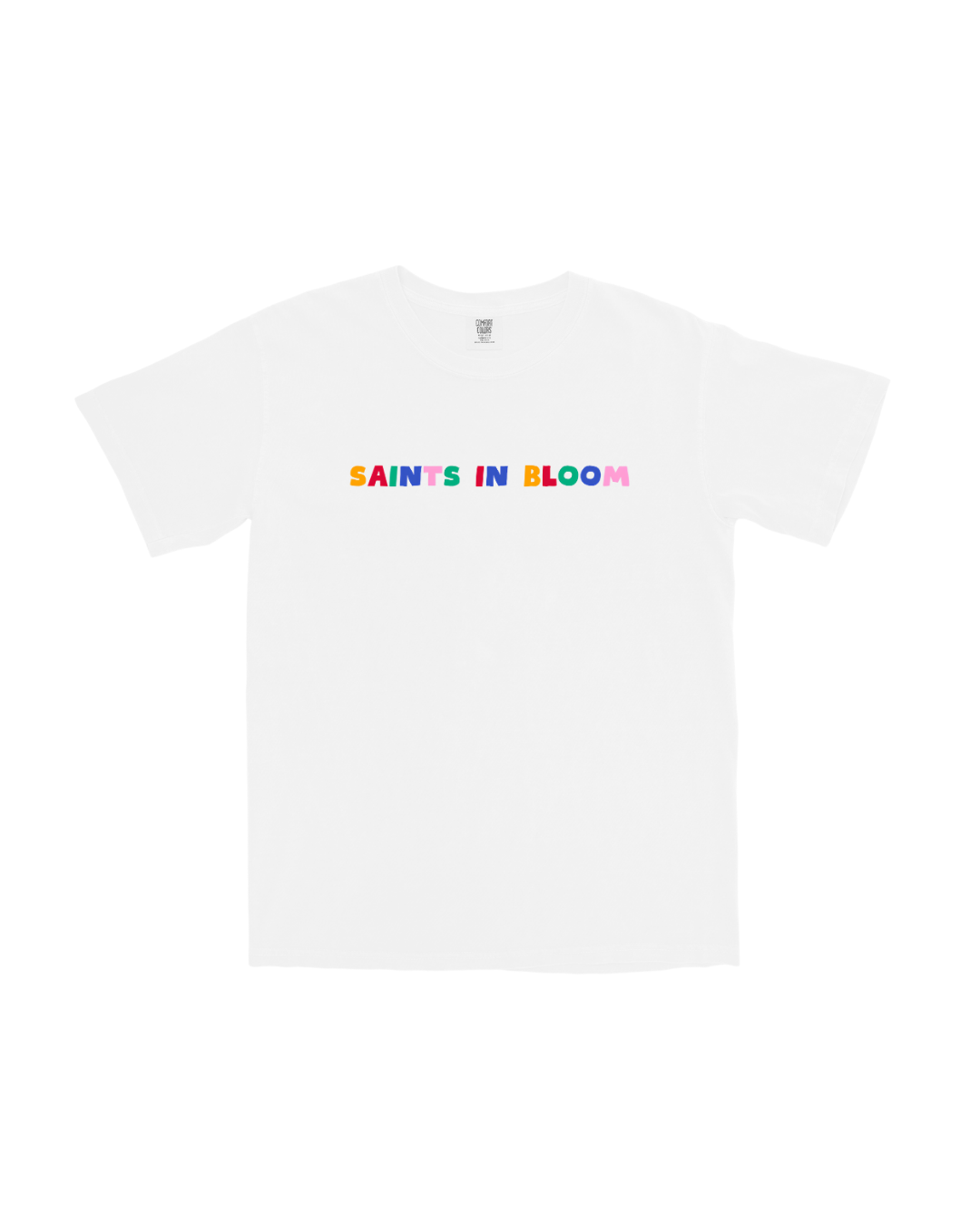 Colorful, simple, and full of heart. This white tee features a small Saints in Bloom design on the front and Just a Girl Who Loves Jesus across the back in bold, bright lettering. Easy to wear, hard to miss, and full of joy.